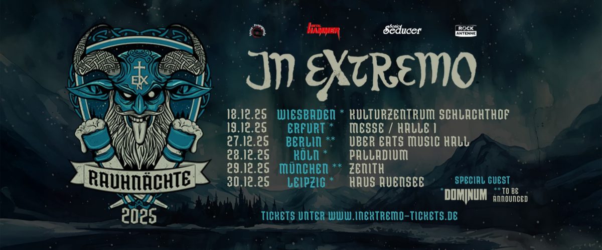 Die Spielmänner sind zurück – lauter, wilder und magischer denn je! In Extremo laden ein zu den „Raunächten“, jener geheimnisvollen Zeit zwischen den Jahren, in der sich Mythos und Musik verschmelzen. Wer die Band kennt, weiß: Das wird keine gewöhnliche Tour, sondern ein Ritual.